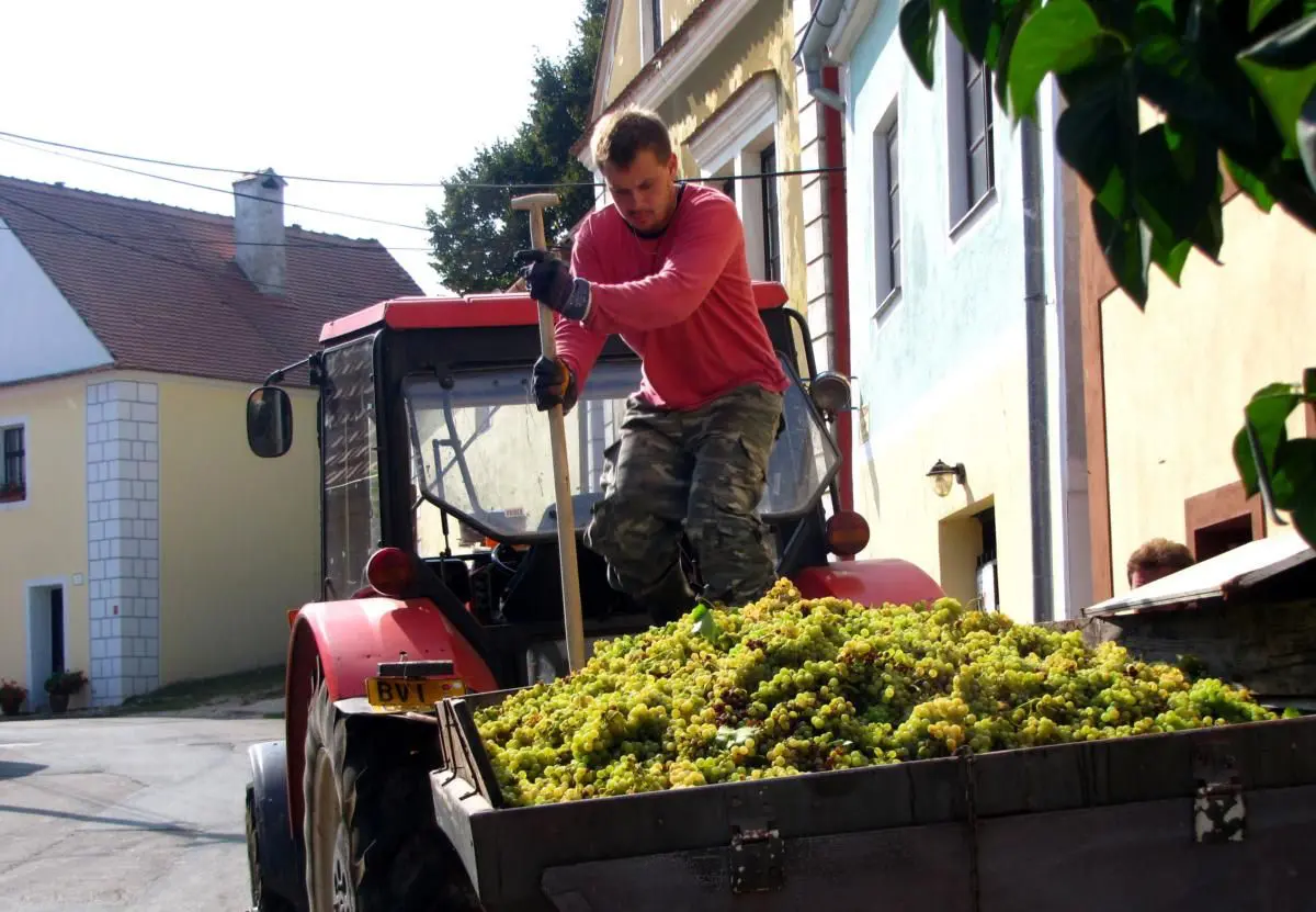 …a tady je opravdova robota, keru turista nevidi. Specijalizovany pracovnik musi ve fuře sena najit všecky slunečka sedmitečne a specijalnim ryčem je přeseknut napul. Tak vznika sytě žlutočervena barva a specificka chuť. Vino se pak prodava turistum z Praglu pod nazvem slamove, připadně po doslazeni kostkovym cukrem ze Španělska jako ledove.