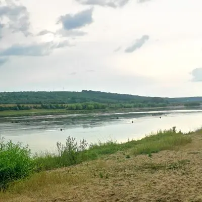 - Dněstr, hranični řeka. Na druhe straně Moldavsko