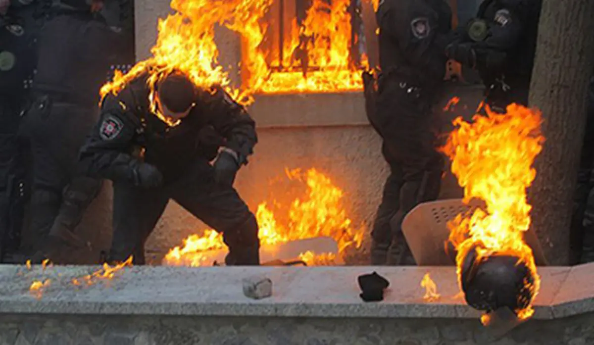Pokud se ve druhe pulce prosinca zdalo, že lidi z brusele neumi zrobit převrat, pak to tak bylo. Jenže fčil už to nevedou fušeři z brusele. Fčil se hraje jina liga. Na Vanoce a rusky Novy rok se zrobila pauza, aby se propracoval scenař 2. Kdo by tež na Vanoce demonstroval, že? A hned po navratu z prazdnin se kola syrskeho a libyjskeho scenařa rozjely naplno. Vyzbrojeni teroristi z řad football fans zahajili utoky na životy a majetek. Jak jinak se da nazvat hovado s dlažebni kostku v jedne a molotovovym koktejlem v druhe ruce, než terorista? A tak zatimco se byvaly česky minyster zahraniči rozplyval nad mirovym zhromažděnim na naměsti, o pět ulic dal se nechavali policajti polivat benzinem, mlatit řetězama a železnyma tyčkama, bo měli a maju rozkaz nezasahovat.