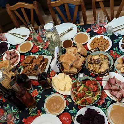 - Gruzinska večeřa. Ne, nesnědli zme ani polovinu, a to nas bylo deset