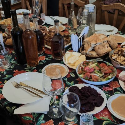 - Gruzinska večeřa. Ne, nesnědli zme ani polovinu, a to nas bylo deset